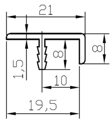 Кромочный профиль для плиты 18-19 мм, загиб односторонний 8 мм (L-2,9 м), черный
