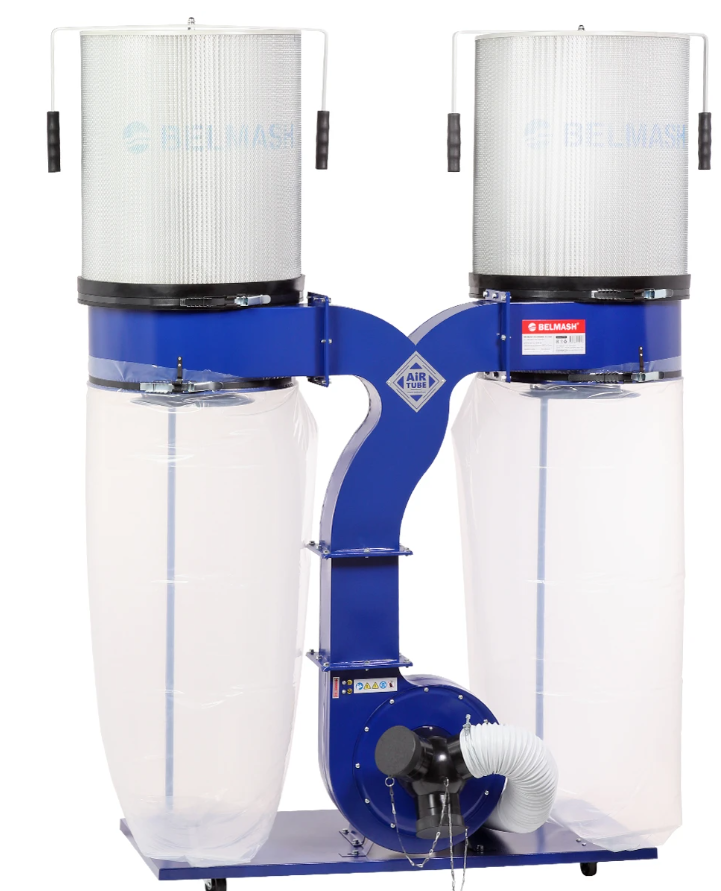 BELMASH DC3900MC-AT - одна из мощных моделей в линейке вытяжных установок (2200 Вт). Рассчитана на подключение к однофазной сети 230В. Двигатель асинхронный, крыльчатка и корпус выполнены из стали. Установка подходит ко всем деревообрабатывающим станкам (фуговальным, рейсмусовым, циркулярным, шлифовальным и т.п.).