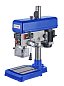 Основание станка чугунное - 310×490 мм (оно в данной модели является и рабочим столом), на нем предусмотрены два паза для установки тисков или других зажимных приспособлений (в комплект поставки не входят). Максимальное расстояние между шпинделем и основанием составляет 540 мм, расстояние от колонны до оси шпинделя составляет 180 мм. Колонна стальная, толстостенная, имеет диаметр 70 мм и толщину стенки - 6 мм. Регулировка расстояния шпиндель/основание производится за счет подъема и опускания сверлильной головки с помощью маховика. Сверление заготовок осуществляется с помощью опускания пиноли, ее ход составляет 85 мм. Элементы управления станком выведены на переднюю часть сверлильной головки. Это кнопки включения и выключения, и кнопка аварийной остановки. Для обеспечения безопасной работы, на станке установлен защитный экран из поликарбоната с концевым выключателем.