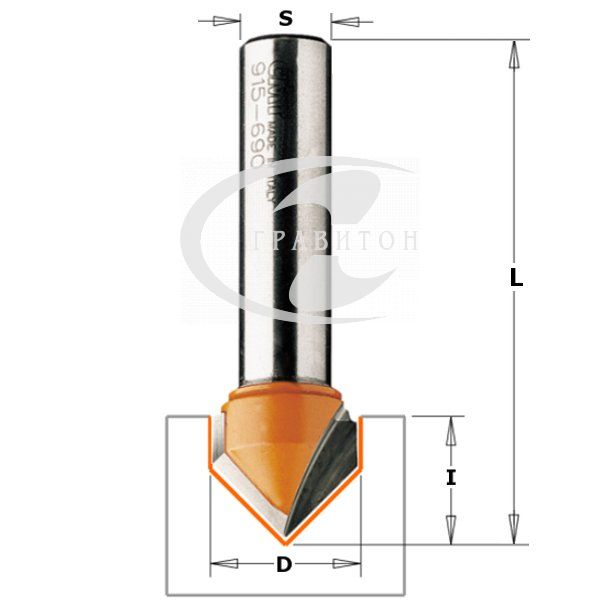 Фреза пазовая c углом 90гр. S=8 D=12,7x12,7
