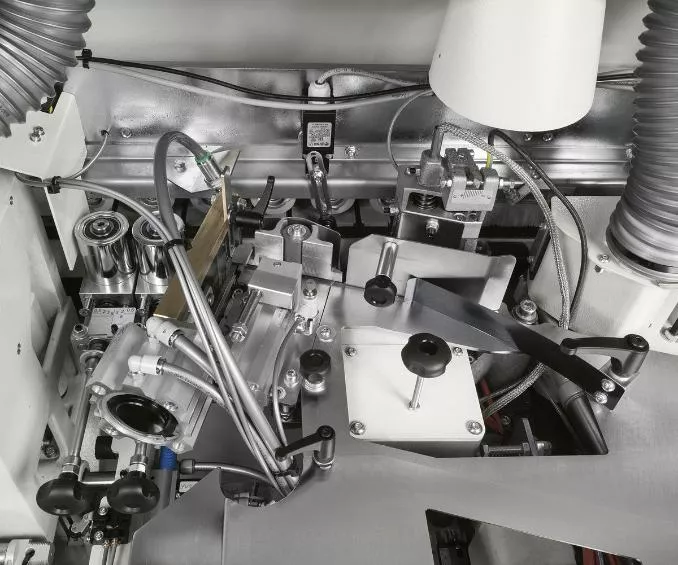 Узел снятия свесов с функцией «Радиус». Эта опциональная группа позволяет производить радиусную обработку торцов панели с кромкой без необходимости выполнять ручную доводку после кромкооблицовки: гениальная идея для получения готовой продукции высокого качества.