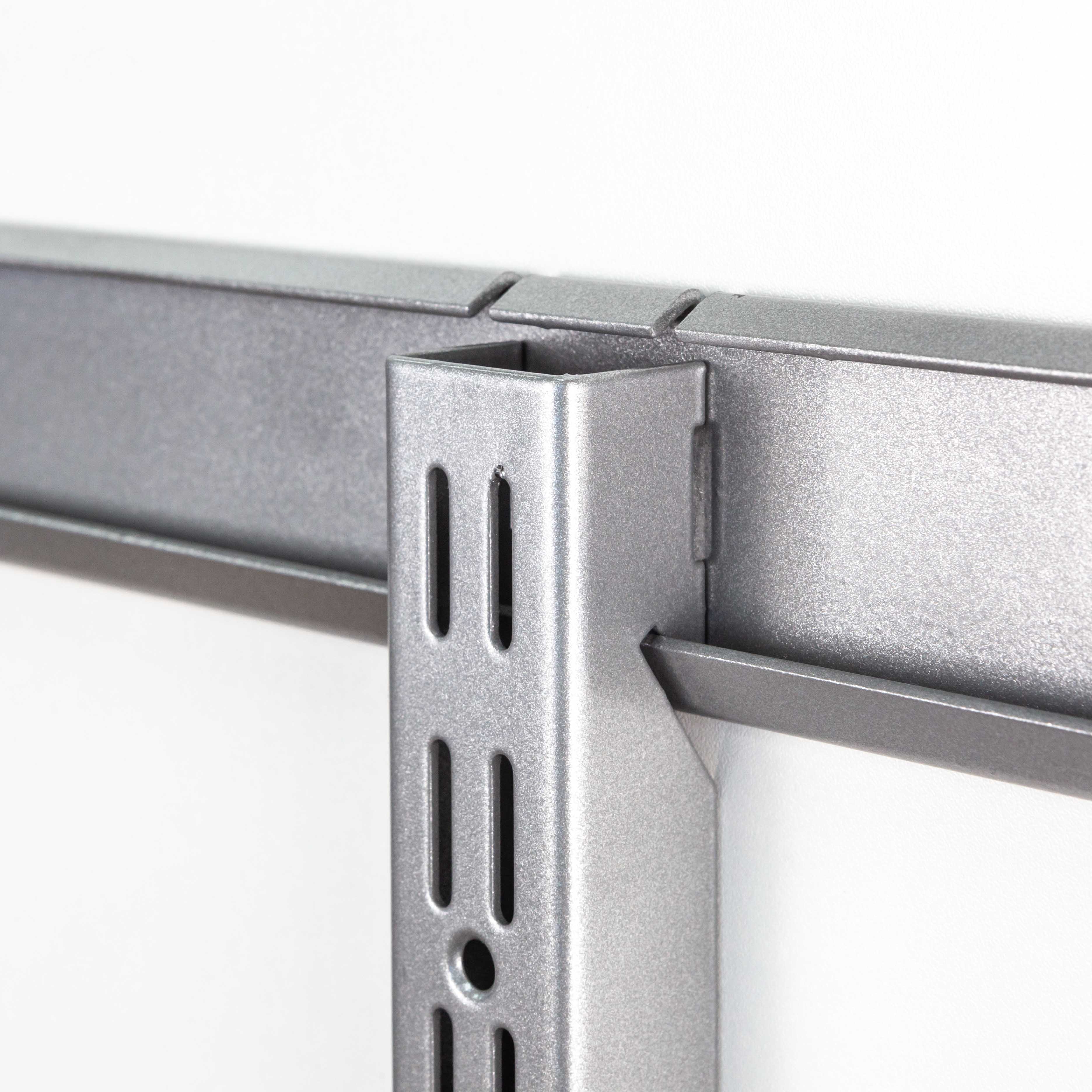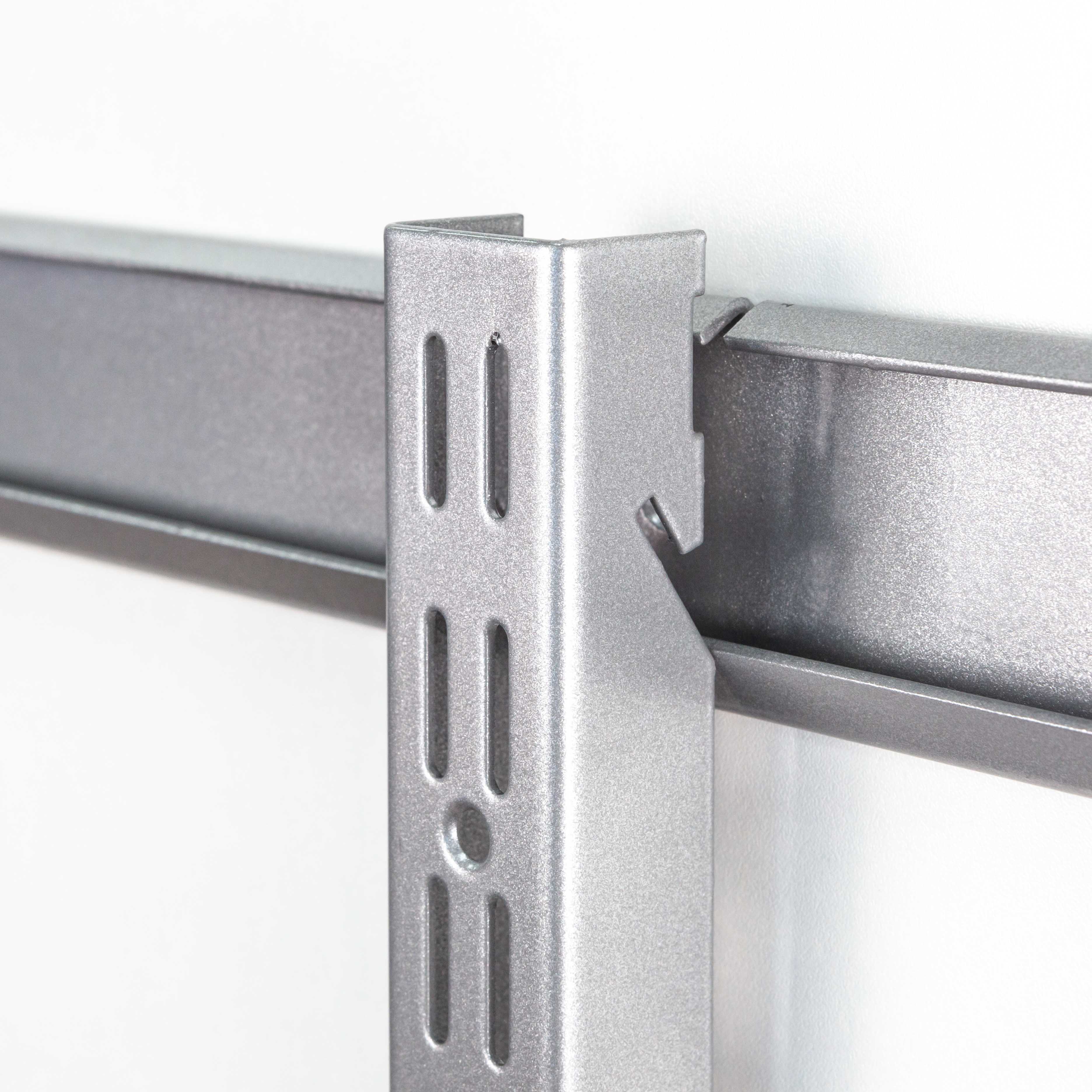 Направляющая имеет двойную перфорацию по всей длине для установки кронштейнов, полок и других элементов гардеробной системы.