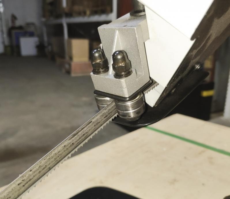 В рабочей зоне резания полотно точно ведется двумя направляющими головками. Поворот корпуса пилы от 0° до +45°, предназначен для пиления заготовок, под различными углами и при частой смене угла пила.