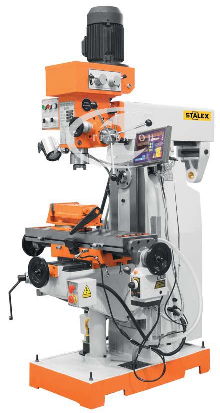 Движение рабочего стола осуществляется в трех плоскостях. Массивный рабочий стол имеет Т-образные пазы для установки и закрепления заготовок и дополнительного оборудования. Станок укомплектован станочными поворотными тисками. На станке установлено автоматическое перемещение стола при помощи электропривода.