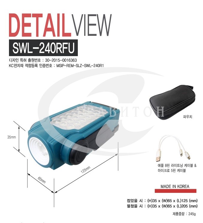 Лампа Solarzen SWL-240RFU является версией популярных инспекционных фонарей Solarzen для частного использования.Особенности: