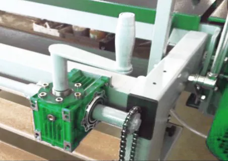 Система ручного подъема. Опускания стола, с помощью цепи.(Опция: моторизированный подъем подвижного стола. При этом оператор станка поднимает/опускает стол с заготовкой не вручную, а нажатием кнопки.)